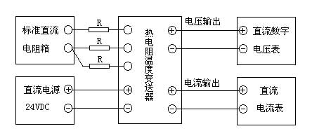 5.1.2按圖2正確接線(圖2為同時具有電壓和電流輸出的溫度變送器的接線,校準時可根據儀表的實際輸出情況而定),儀表通電預熱5分鐘;