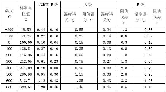 按IEC751國際標準,溫度系數TCR=0.003851,Pt100(R0=100Ω)、Pt1000(R0=1000Ω)為統一設計型鉑電阻。TCR=(R100-R0)/(R0×100),其中